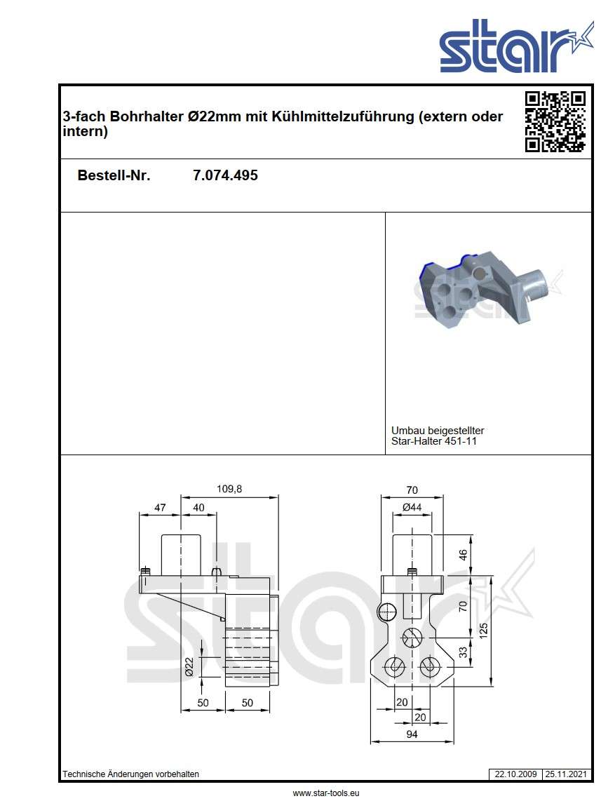 ਕੂਲੈਂਟ ਸਪਲਾਈ ਦੇ ਨਾਲ ਟ੍ਰਿਪਲ ਡ੍ਰਿਲ ਹੋਲਡਰ Ø22mm (ਬਾਹਰੀ ਜਾਂ