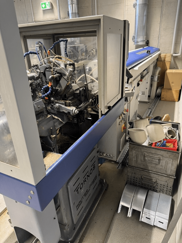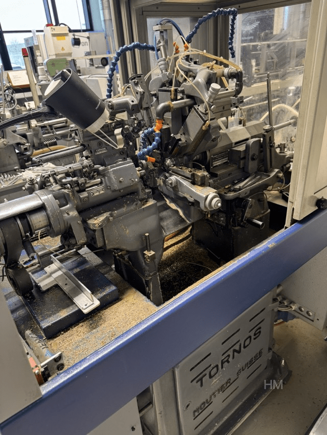 Zum Verkauf steht ein gebrauchter Präzisions-Drehautomat TORNOS MS7 HY 6, Baujahr 1989, ausgestattet mit einem Stangenlademagazin IEMCA ELITE 112, Baujahr 2012.