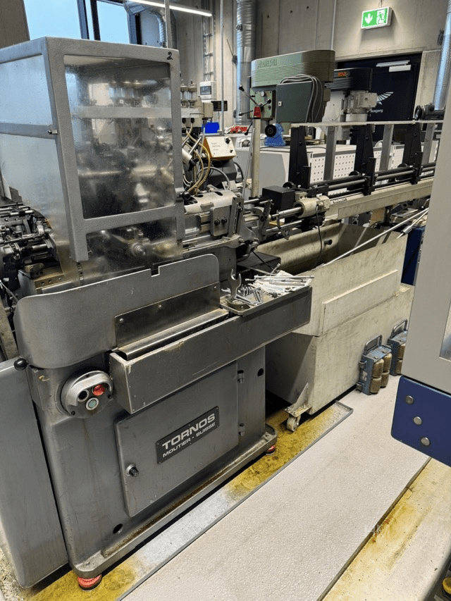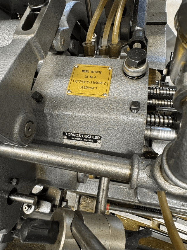 Zum Verkauf steht ein gebrauchter Langdrehautomat / Drehautomat TORNOS R10, Baujahr 1987, ausgestattet mit einem Stangenlademagazin BARBOY Typ 29-AA-1.
