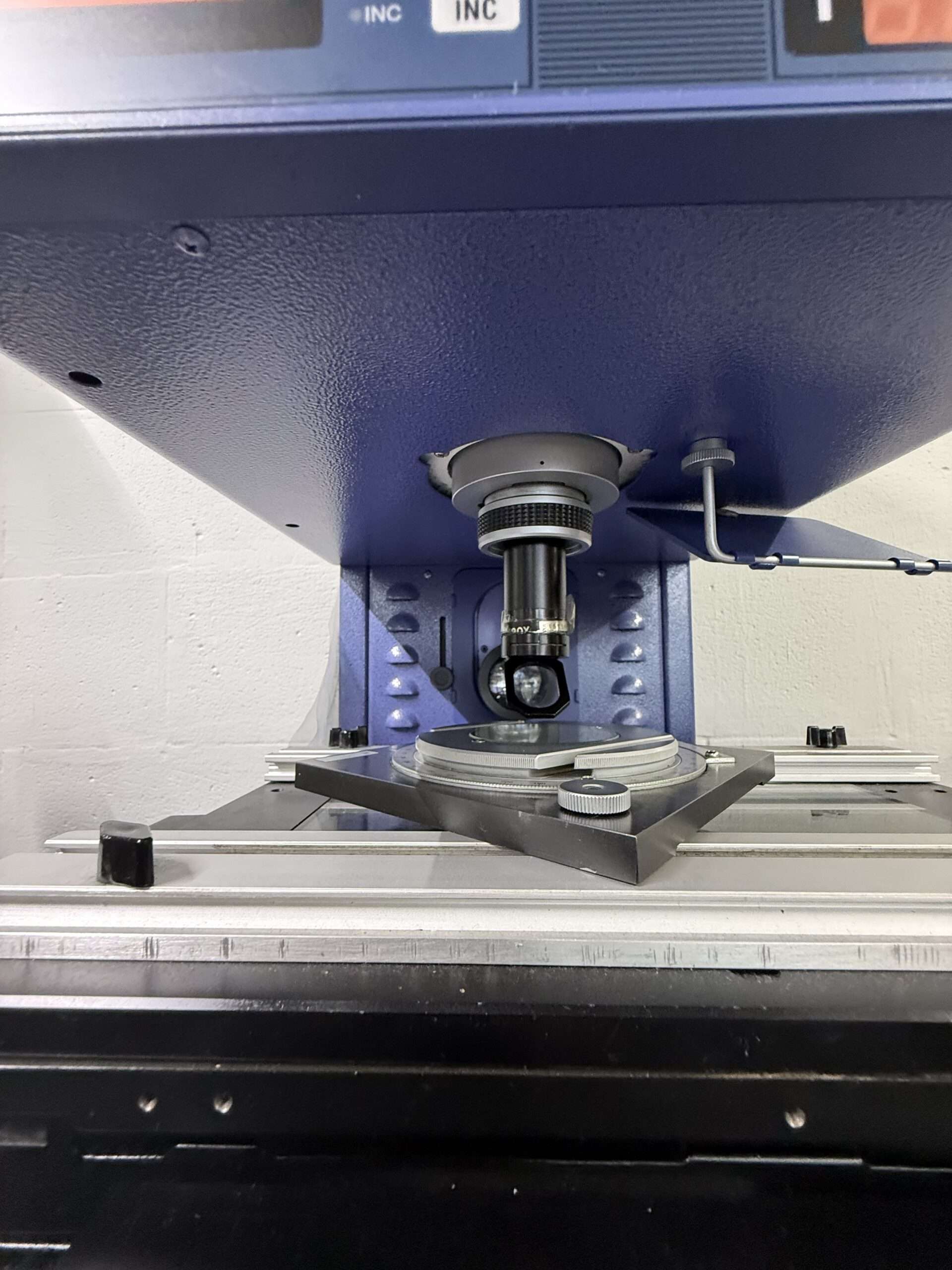 Verkauft wird ein Mitutoyo PJ-A3000 Profilprojektor, ideal für die Qualitätssicherung, Fertigungskontrolle und präzise Werkstückmessungen.
